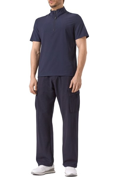 Поло с рельефным кантом на отложном воротнике выполнили из шерстяного трикотажа, усиленного шелком. Лаконичная модель застегивается молнией.