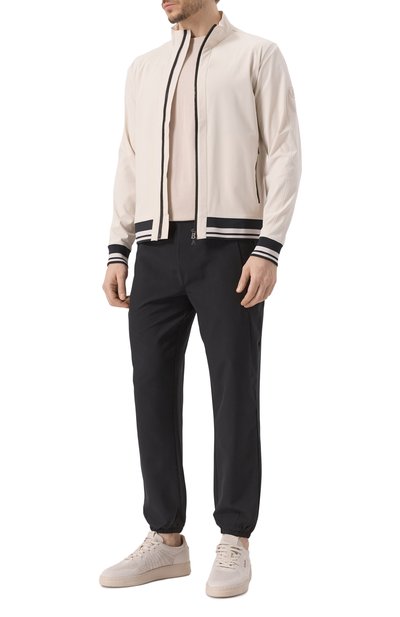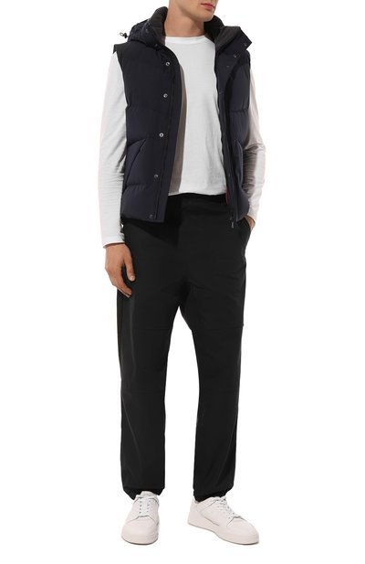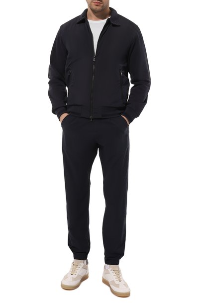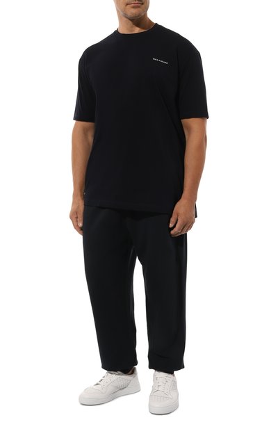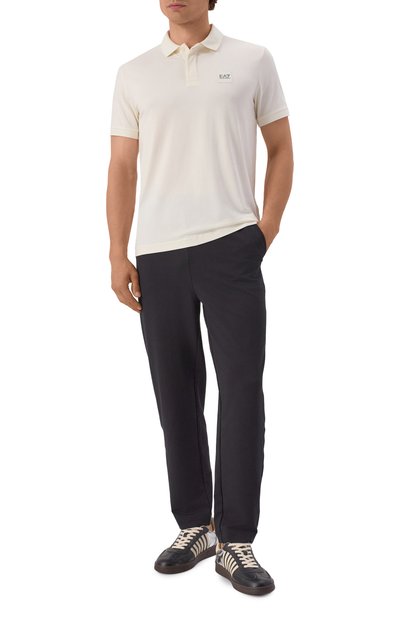 Джоггеры с логотипом марки сзади выполнили из хлопка с добавлением полиэстера. Модель с эластичным поясом-кулиской дополнили тремя карманами.