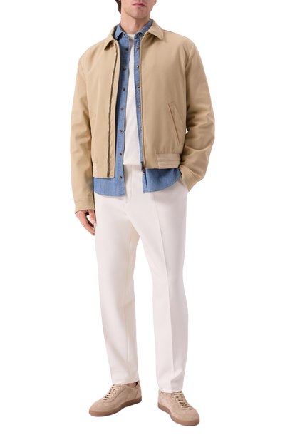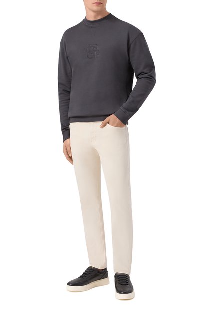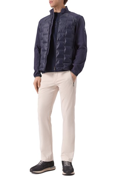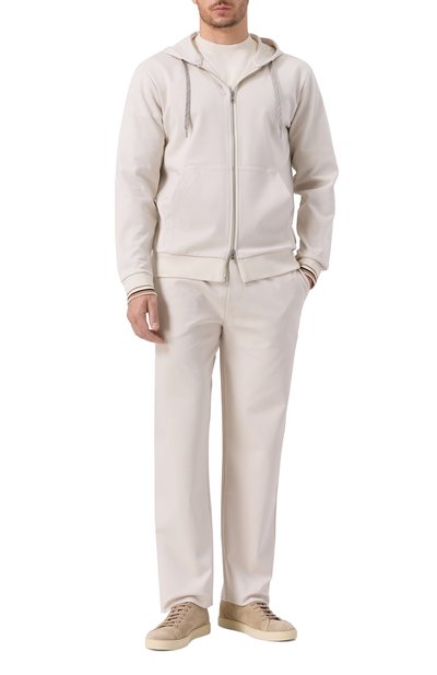 Брюки Hadim прямого кроя выполнили из стрейчевого хлопкового трикотажа с добавлением полиэстера. Модель с полосатым поясом-кулиской в рубчик дополнили боковыми и задним карманами.