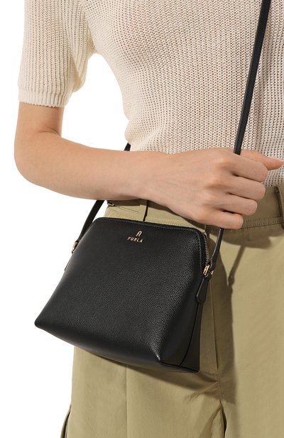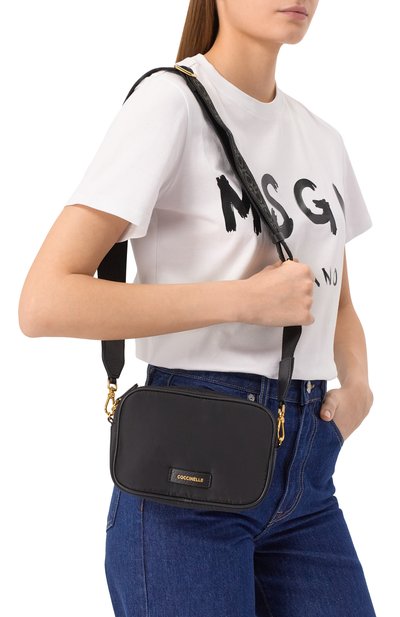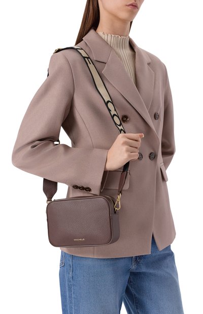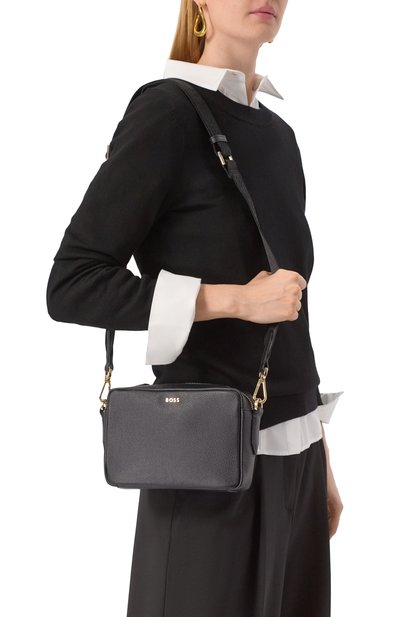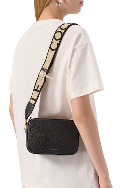 Сумку Lenah из телячьей кожи украсили рельефным логотипом спереди. Сама модель, как и внутренний карман, застегивается молнией. Аксессуар дополнили регулируемым плечевым ремнем.