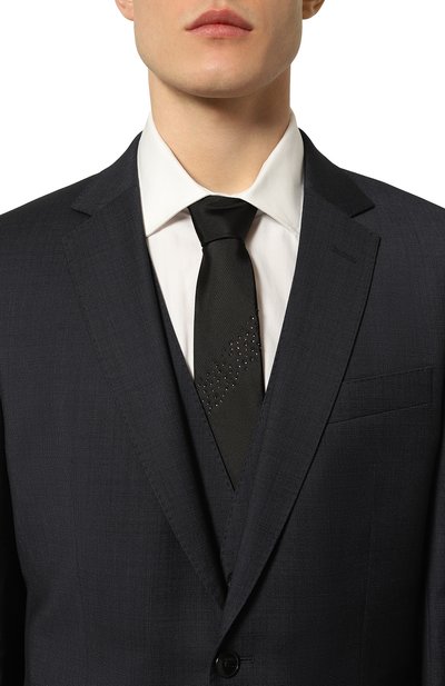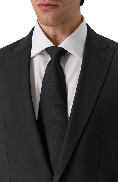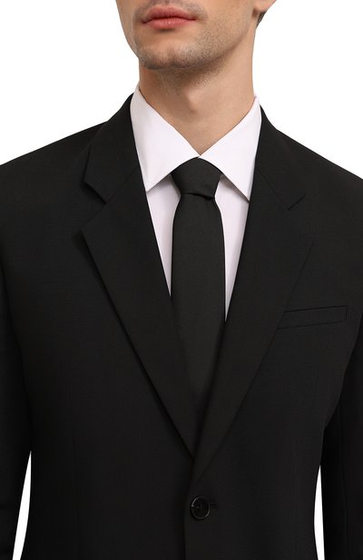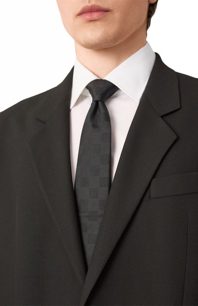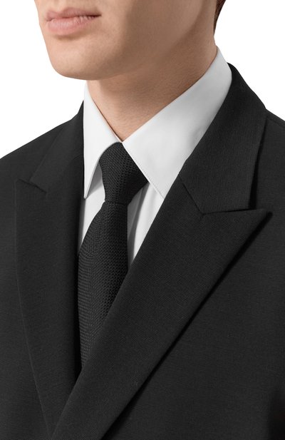 Галстук с эластичным швом на внутренней стороне изготовили из шерсти с добавлением нейлона. Аксессуар легко драпируется и быстро расправляется после узла.