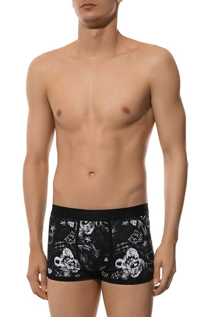 Боксеры Damien-Utlt сшили из эластичного джерси с рождественским принтом. Облегающие трусы дополнили поясом-резинкой с жаккардовыми логотипами марки.