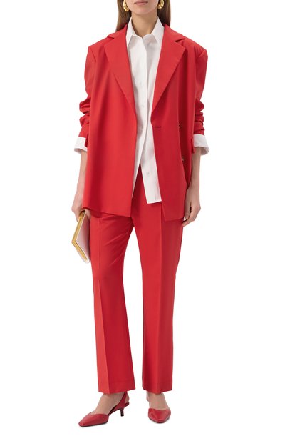 Туфли Akila LDS с зауженным квадратным мысом выполнили из мелкозернистой телячьей кожи. Этим же материалом обтянули каблук kitten heel и эластичную вставку на ремешке, охватывающем открытую пятку.