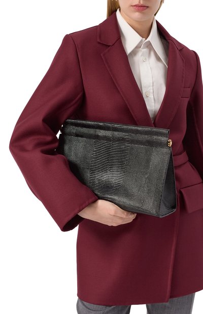 Клатч Elmer на хлопковом подкладе выполнили из телячьей кожи. Аксессуар с логотипом спереди застегивается магнитной кнопкой с накладкой, украшенной ручной гравировкой.