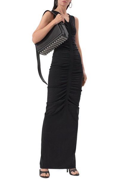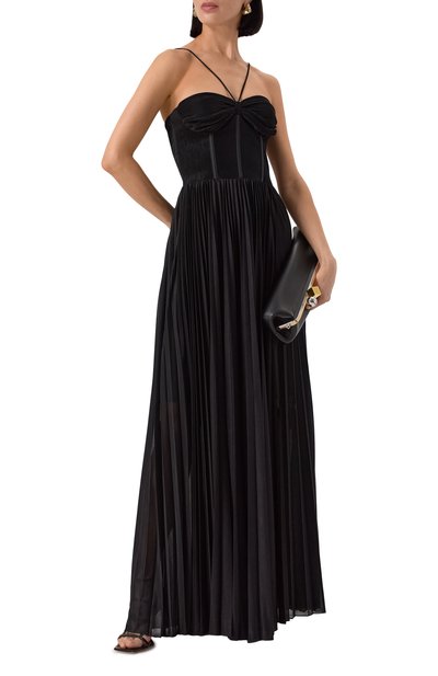 Платье Heidi с подчеркнутой линией плеч и неглубокой горловиной выполнили из джерси. Сбоку облегающую модель с расклешенным подолом дополнили акцентным высоким разрезом с полупрозрачной тюлевой вставкой.