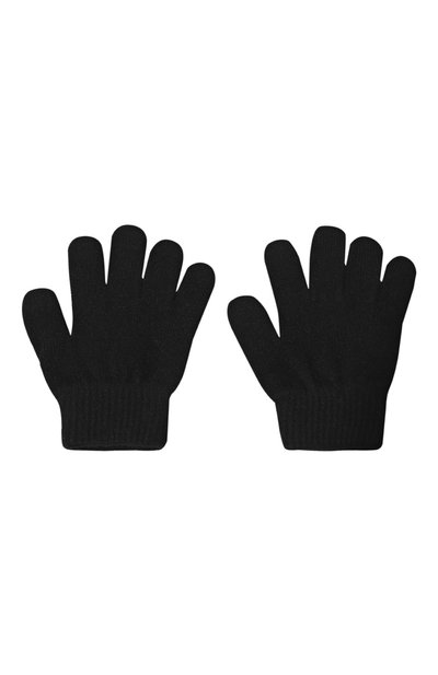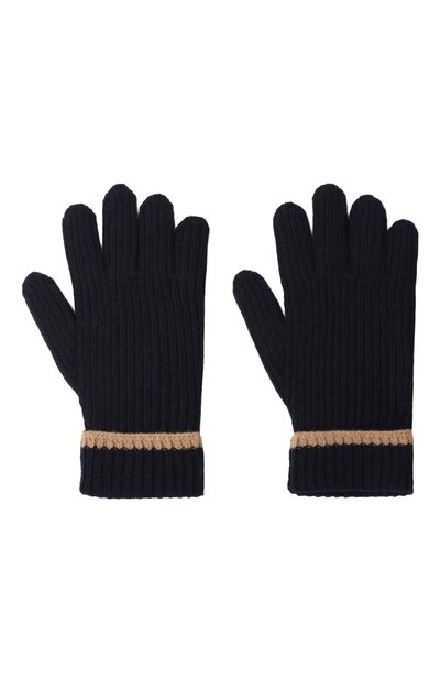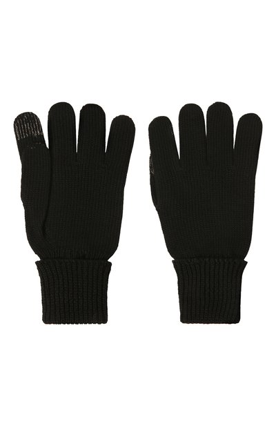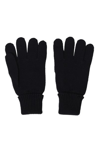 Перчатки связали микса шерсти и акрила, выполнив более плотной вязкой удлиненную манжету. Аксессуар украсили логотипом, вышитым контрастной нитью на тыльной стороне.