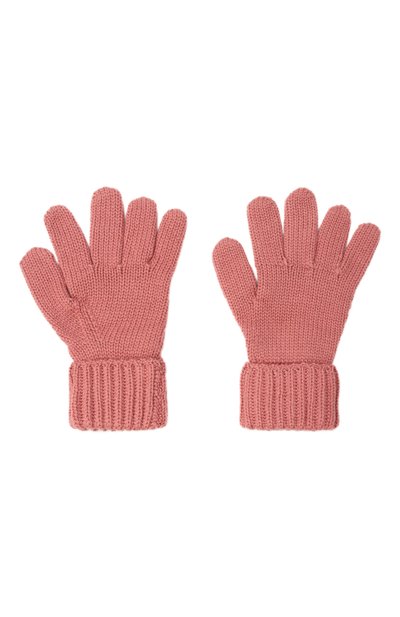 Перчатки Eglekid связали из пряжи на основе шерсти и акрила. Широкую манжету в рубчик украсили контрастной нашивкой с жаккардовым логотипом.