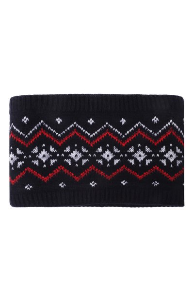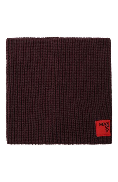 Для изготовления широкого шарфа-снуда использовали микс шерсти и акрила. Спереди ребристую модель дополнили текстильной брендированной нашивкой.