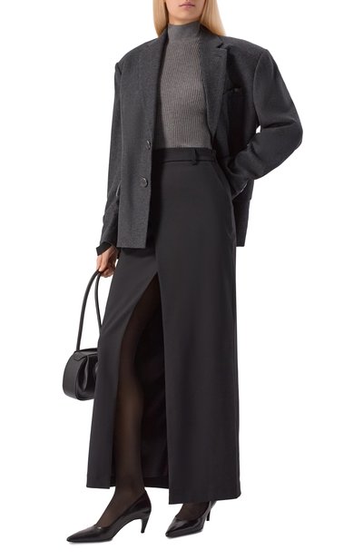 Макси-юбку Concordians Phleg pillar с фирменными простроченными полосами сзади выполнили из плотного футера на основе органического хлопка. Модель с текстильным поясом-кулиской и высоким разрезом спереди дополнили двумя карманами.
