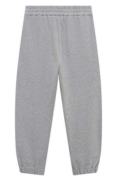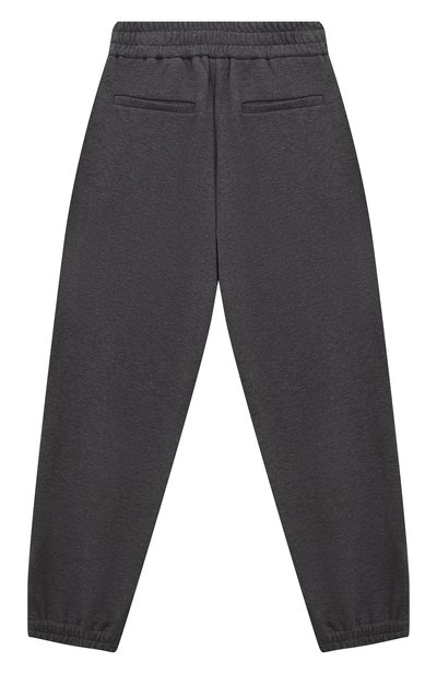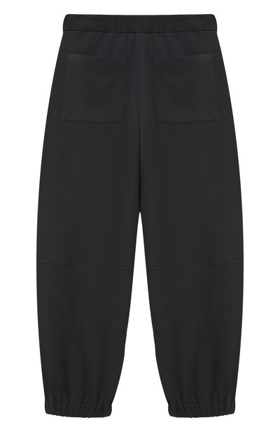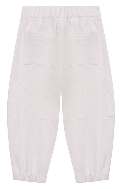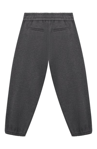 Брюки Track Baggy из футера Smooth дополнили эластичными манжетами и поясом-кулиской. На модели кроме боковых карманов разместили карго, украшенный вышитой эмблемой Solomeo с пайетками.