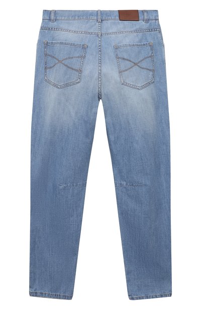 Джинсы с замшевым патчем на поясе выполнили из облегченного хлопкового денима плотностью семь унций. Окрашенную в готовом виде модель дополнили пятью карманами, декорировав монетный вышитой эмблемой Solomeo.