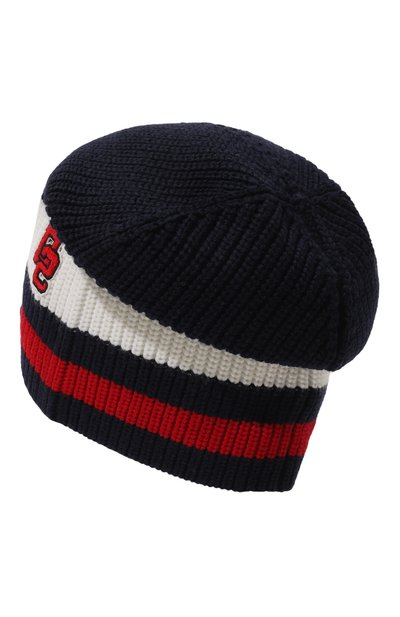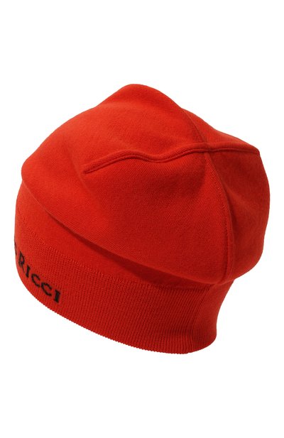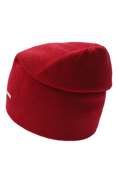 Шапку бини с отворотом и узкий шарф связали резинкой из шерстяной пряжи. Оба аксессуара декорировали брендированным ярлыком фирменного алого оттенка.