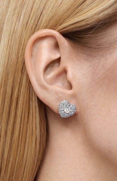 Серьги Matrix выполнили из латуни с гальваническим покрытием родием. Аксессуар в виде двух полуколец, соединенных друг с другом, украсили вставками из циркония.
