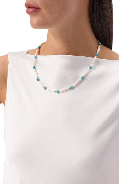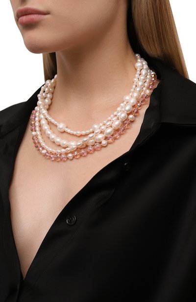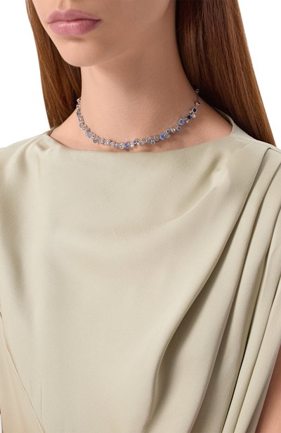 Колье Constella с брендированной вставкой рядом с застежкой «лобстер» выполнили из латуни с ионным покрытием нитридом титана. Регулируемую модель с подвеской украсили кристаллами и цирконием разной огранки.