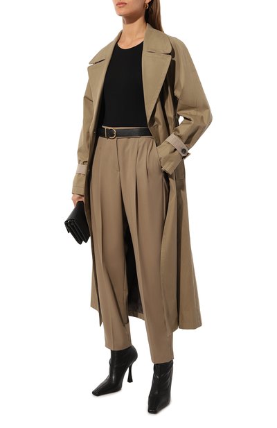 Брюки Entrata с двойными складками и стрелками дополнили боковыми карманами. Модель с высокой посадкой изготовили из эластичного шерстяного твила. В комплекте — регулируемый ремень с круглой пряжкой.