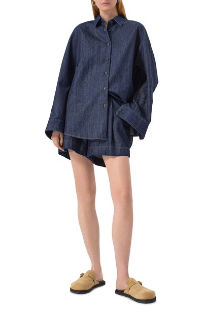 Джинсовую oversize-рубашку Lotta с закругленным низом и фигурными кокетками дополнили большими нагрудными карманами с клапанами. Выбеленная модель из жесткого денима на основе регенерированного хлопка застегивается кнопками.