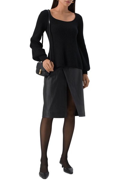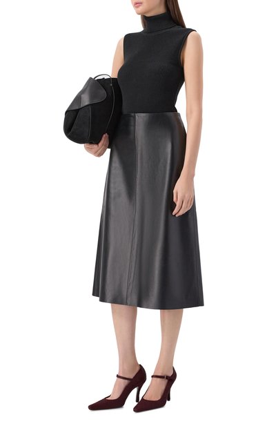 Короткую юбку Hull с брендированным патчем на поясе сзади сшили из наппы ягненка с декоративными поте ртостями, а подклад изготовили из полиэстера. Модель A-силуэта дополнили пятью карманами.
