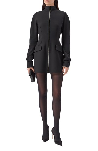 Приталенное мини-платье Tefrite из капсульной коллекции Clepsydra выполнили из эластичного шерстяного габардина. Модель с высоким цельнокроеным воротом и карманами, закрывающимися клапанами, застегивается потайной молнией сзади.