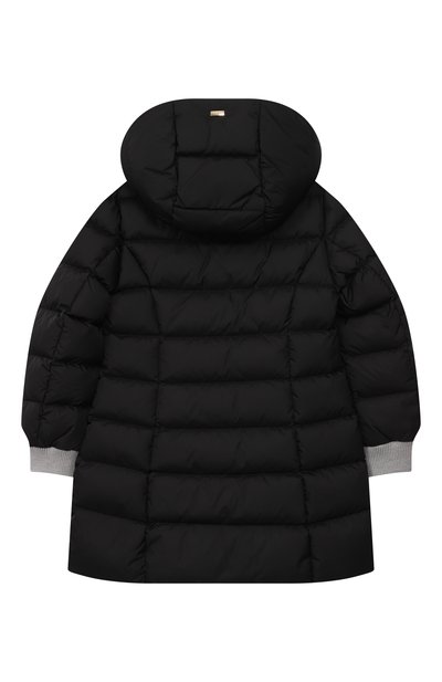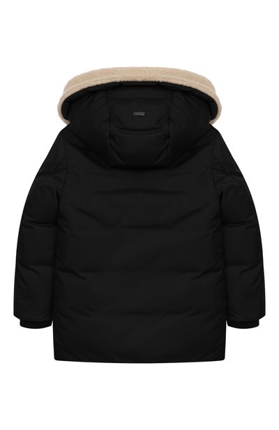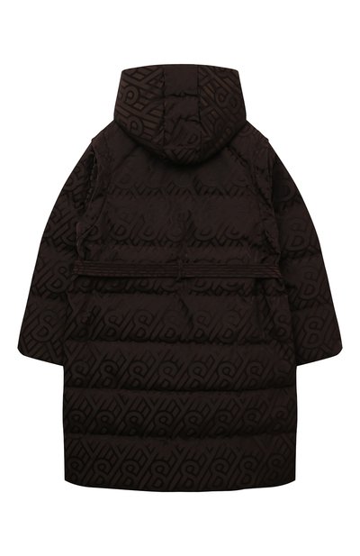 Стеганое пальто на утином пуху сшили из полиэстера. Модель с мотивом Burberry Check на подкладе дополнили капюшоном, эластичными манжетами и боковыми карманами. Рукав украсили аппликацией с медвежонком Thomas Bear.