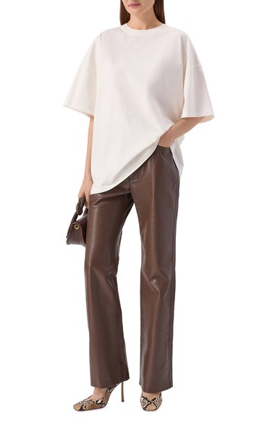 Oversize-футболка из чистого хлопка органично впишется в базовый гардероб. Неглубокую круглую горловину модели продублировали рифленым кантом.