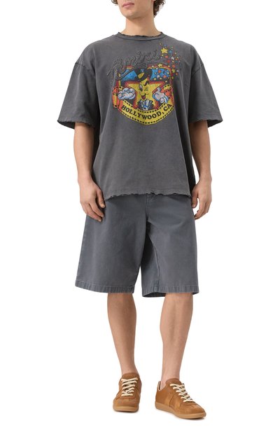 Кеды на тонкой резиновой подошве, вдохновленные спортивной обувью из 1970-х, выполнили из телячьей замши и гладкой наппы. Модель украсили тисненой эмблемой на язычке.