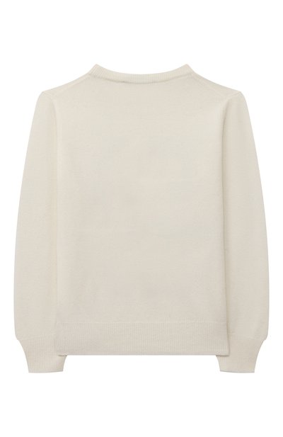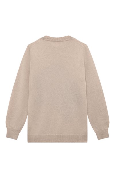 Пуловер с круглой горловиной выполнили из кашемирового трикотажа. Спереди модель, представленную эксклюзивно в ЦУМе, украсили жак кардовым изображением олененка.