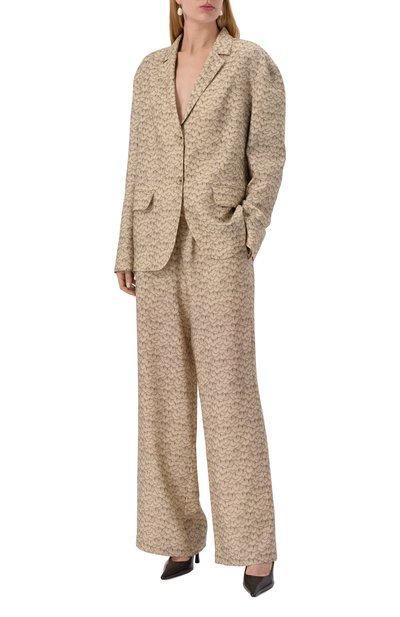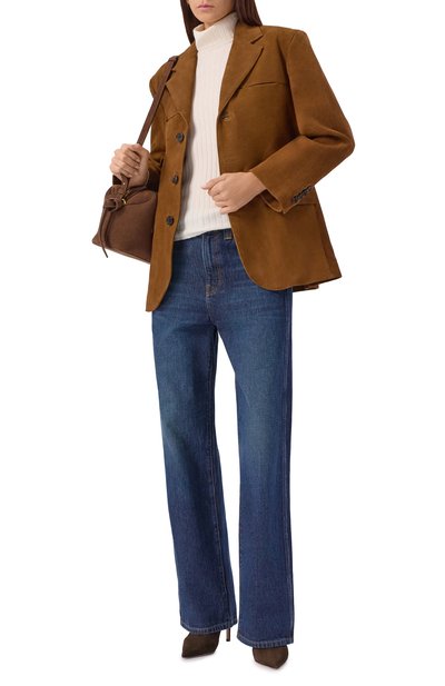 Oversize-жакет Rolanda со спущенной линией плеч выполнили из замши. Модель с прямоугольными лацканами и двумя шлицами сзади дополнили нагрудным и парой прорезных боковых карманов.