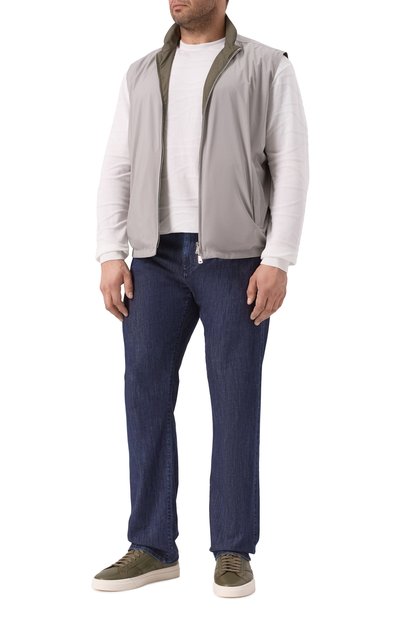 Пуховый жилет Zack с высоким воротником-стойкой и трикотажным поясом сшили из влагостойкого микса кашемира и полиамида. Модель с двумя врезными карманами застегивается встречной молнией.