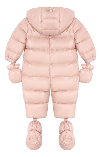 Стеганый пуховик из глянцевого нейлона дополнили трикотажными манжетами и боковыми карманами. Капюшон модели украсили отделкой из меха с длинным ворсом. Куртка на утином пуху застегивается молнией.