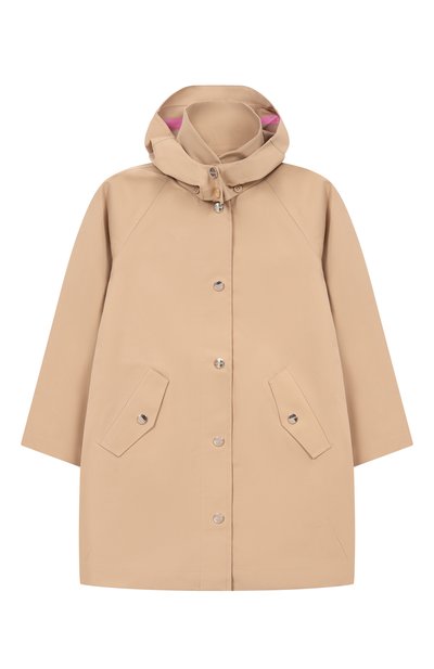 Для пошива парки на синтепоне использовали комбинацию матового и шелковистого полиэстера. Модель с капюшоном и двумя врезными карманами застегивается встречной молнией.