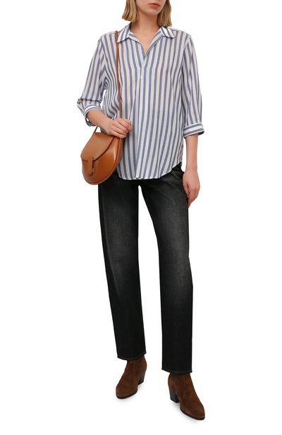 Рубашку Zavorra с рукавами 3/4, спущенной линией плеч и разрезами по бокам сшили из поплина на основе органического хлопка. Модель свободного кроя дополнили нагрудным карманом.