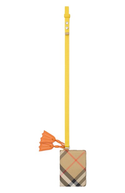 Пенал из нейлона в клетку Burberry Check застегивается молнией с кожаным пуллером в виде утиных лапок. Декор поддержали яркой петлей, имитирующей клюв, и ярлыком ей в тон.