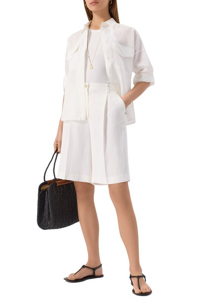 Блузу Nichel с фигурным низом и бантовой складкой на спинке выполнили из хлопка oxford. Модель с прямоугольными манжетами и нагрудным карманом украсили неб ольшой эмблемой внизу.