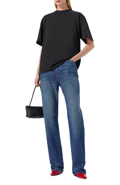 Слегка выбеленные джинсы Gastone украсили фирменным жакроном на поясе и заклепкой в виде литеры S на одном из пяти карманов. Модель с боковыми складками на широких брючинах сшили из денима.