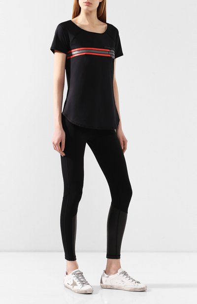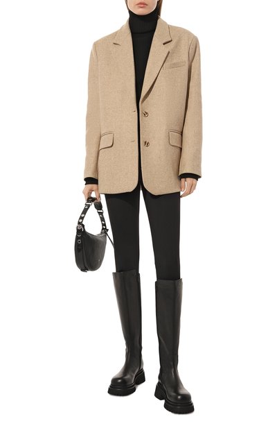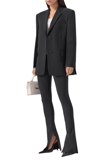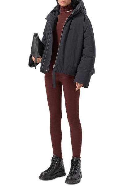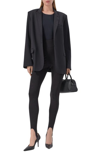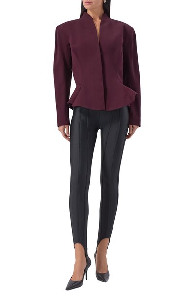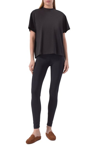 Расклешенные легинсы выполнили из рифленого трикотажа на основе модала. Модель с широким поясом и высокой посадкой составит гармоничный дуэт с парным топом.