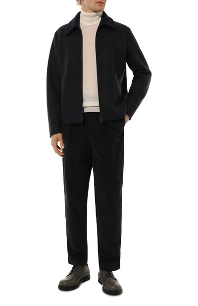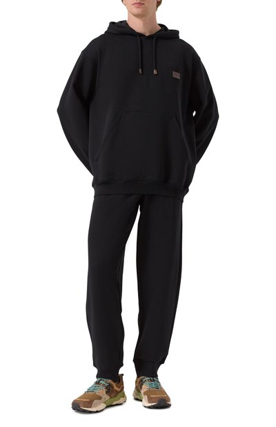 Широкие джоггеры с заниженной шаговой линией выполнили из хлопка. Модель с эластичным поясом-кулиской дополнили задним и двумя боковыми карманами.