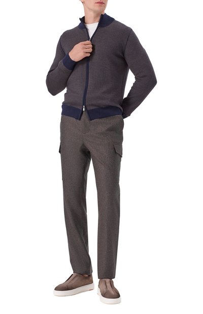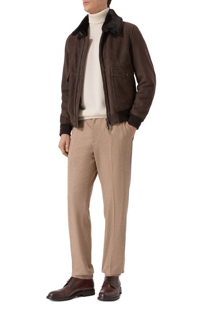 Брюки из ворсованного кашемира составят гармоничный непринужденный дуэт с парной рубашкой. Модель свободного кроя дополнили боковыми и задними карманами.