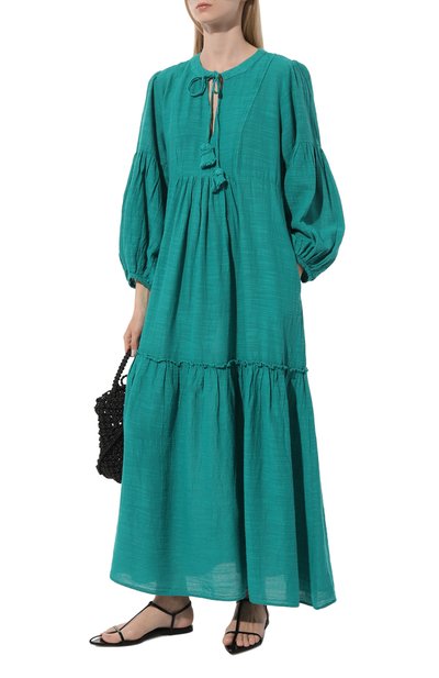 Плиссированное мини-платье Daliette с круглым вырезом и широкими рукавами реглан сшили из тонкого полиэстера. Модель с ромбовидным орнаментом на талии застегивается пуговицей сзади.