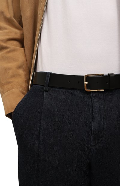 Ремень Gordy стандартной ширины изготовили из гладкой кожи. Аксессуар со строчками фирменного алого оттенка украсили выгравированным логотипом на состаренной металлической пряжке.