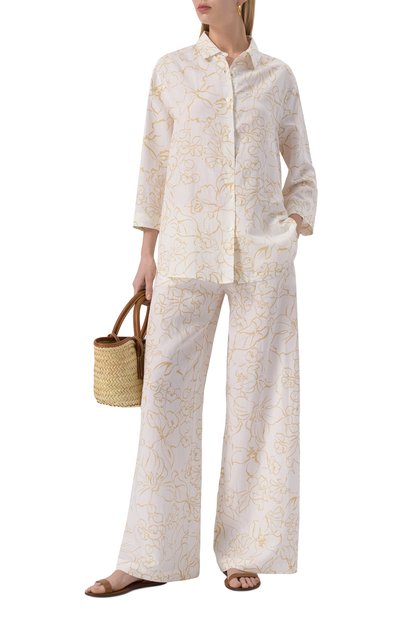 Брюки Tilloi с атласным эластичным поясом дополнили боковыми карманами. Широкую модель изготовили из эластичного полиэстера, полностью расшитого пайетками.