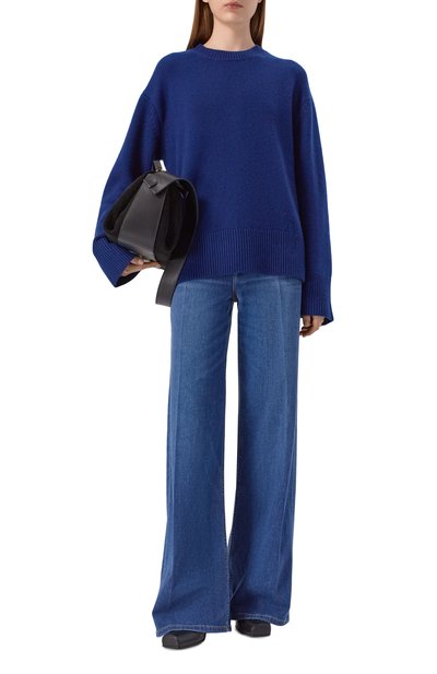 Oversize-пуловер Fascona связали из чистого кашемира. Спереди модель с круглой горловиной в рубчик украсили рельефным швом.