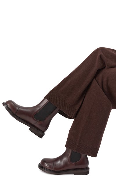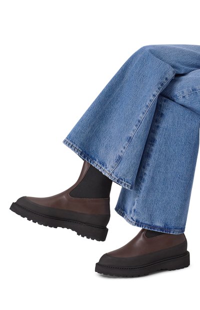 Челси Louri Combat на массивной литой подошве с протектором дополнили эластичными плетеными панелями по бокам. Голенище модели из полированной кожи украсили фирменной монограммой JC.