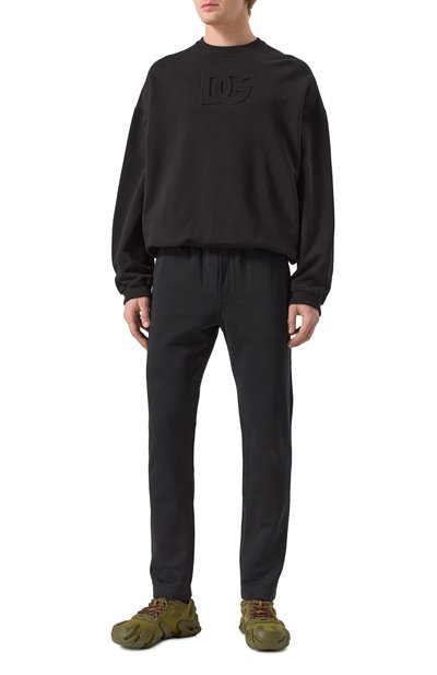 Oversize-свитшот с эластичными манжетами и поясом выполнили из хлопкового трикотажа. Спущенную линию плеч подчеркнули, сместив швы на спинку, а под горловиной разместили брендированный патч.
