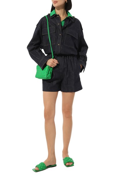 Шлепанцы Riva с квадратным мысом выполнили из гладкой кожи ягненка. Модель с широкими ремешками, сплетенными в знаковой технике intrecciato, установили на подошву с резиновой аутсолью и наборным каблуком.