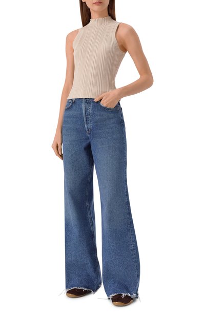 Расклешенные джинсы Charlotte с декоративными потертостями выполнили из хлопкового денима с добавлением полиуретана. Пояс модели с пятью карманами дополнили брендированным патчем.