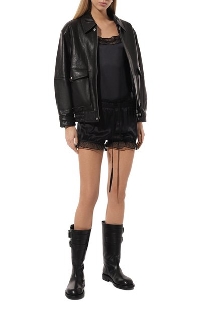 Шорты Vere с эластичным поясом-кулиской сшили из струящегося шелкового атласа. Модель дополнили вставками из полупрозрачного фестончатого кружева в тон.