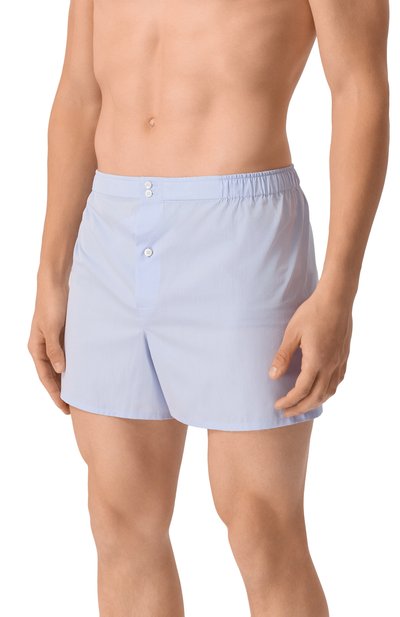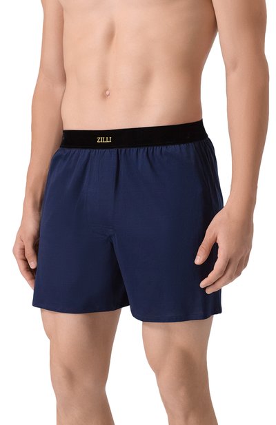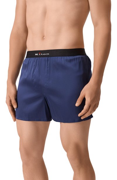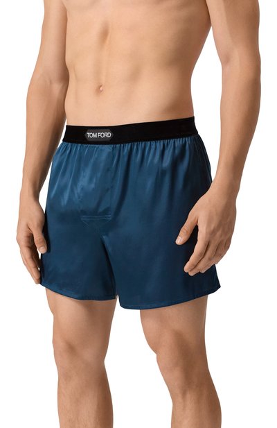 Боксеры в горох выполнили из шелкового атласа. Трусы с имитацией ширинки дополнили эластичным поясом с брендированным патчем.