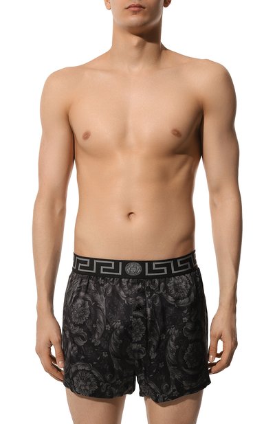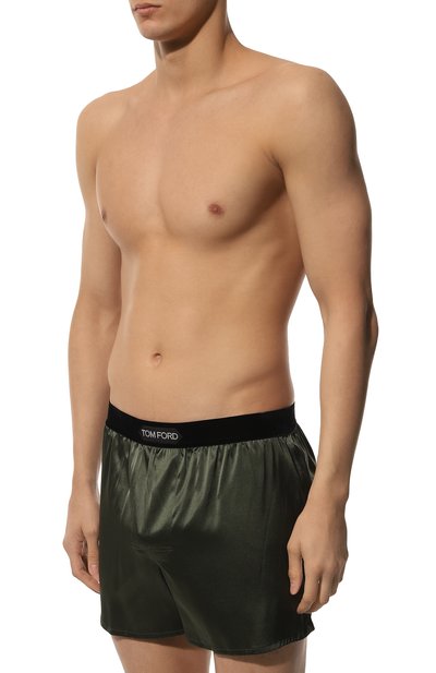 Боксеры в горох выполнили из шелкового атласа. Трусы с имитацией ширинки дополнили эластичным поясом с брендированным патчем.