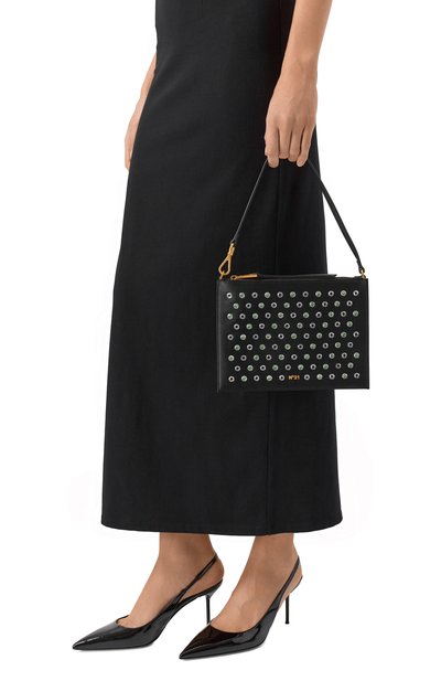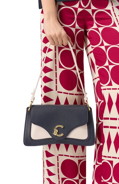 Сумку The Snapshot с накладками в виде эмбле мы J Marc спереди выполнили из стеганого денима. Модель с двумя внутренними карточными слотами застегивается молнией. В комплекте – короткая ручка и плечевой ремень-цепочка.