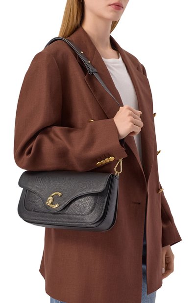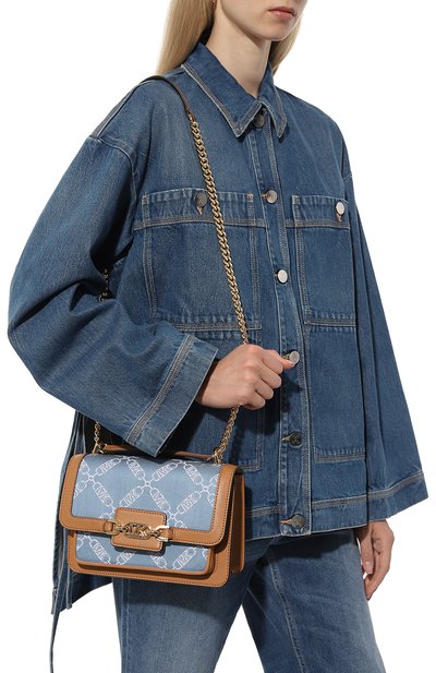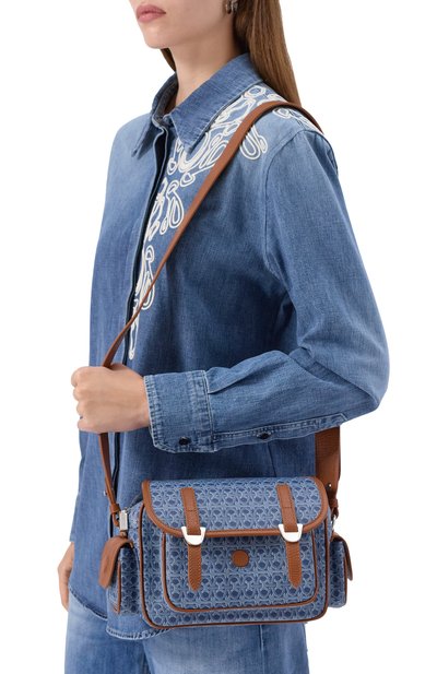 Стеганую сумку Snapshot со скользящим ремешком-цепочкой сшили из денима. Аксессуар с накладным к арманом сзади и крупной эмблемой спереди застегивается встречной молнией.